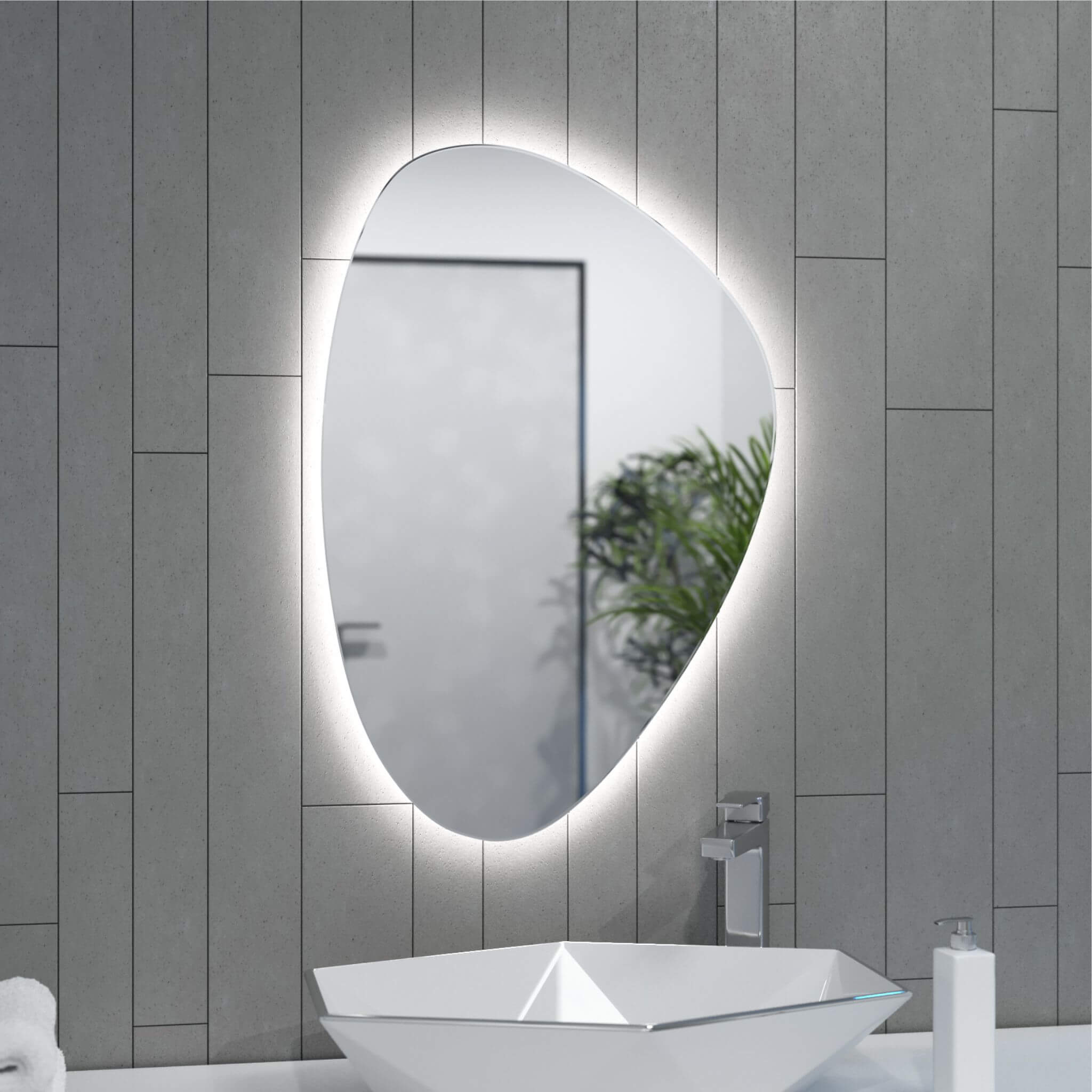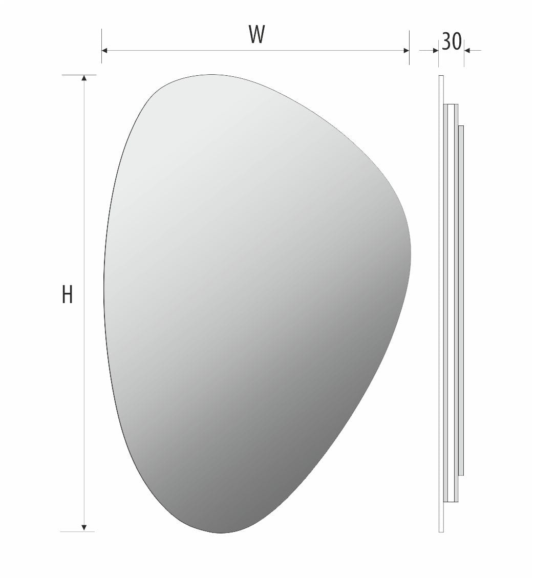 Lustro o nieregularnym kształcie, które wyróżnia się nowoczesnym designem i oryginalną formą. Wyposażone w tylne podświetlenie LED, delikatnie rozprasza światło na ścianę, tworząc nastrojowy efekt i podkreślając linię tafli. Nel 2 to połączenie funkcjonalności z dekoracyjnym akcentem, idealne do łazienek, garderób i wnętrz urządzonych w nowoczesnym stylu.