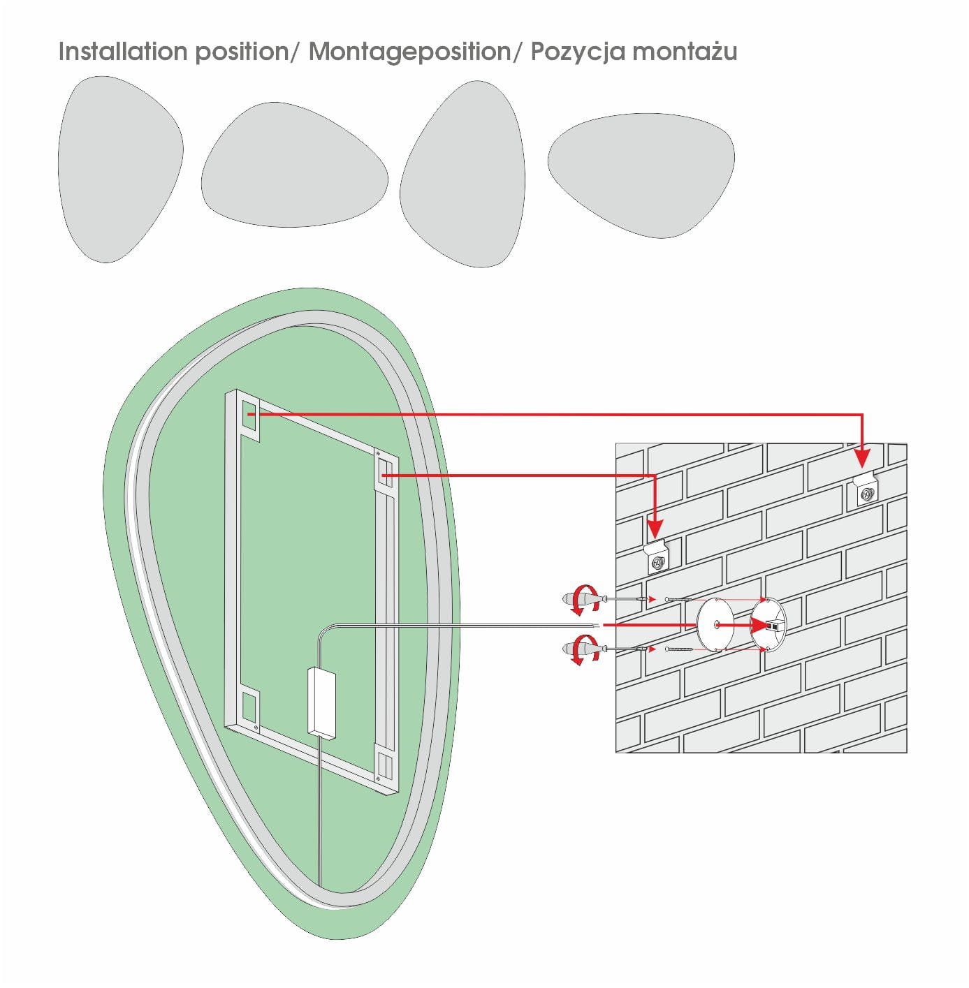 Jeżeli zachodzi potrzeba, można wybrać dodatkowo przełączniki lub sterowniki oświetlenia w lustrze. Przełączniki są przeznaczone dla luster ze światłem jednobarwnym, a sterowniki do luster ze światłem dwubarwnym.