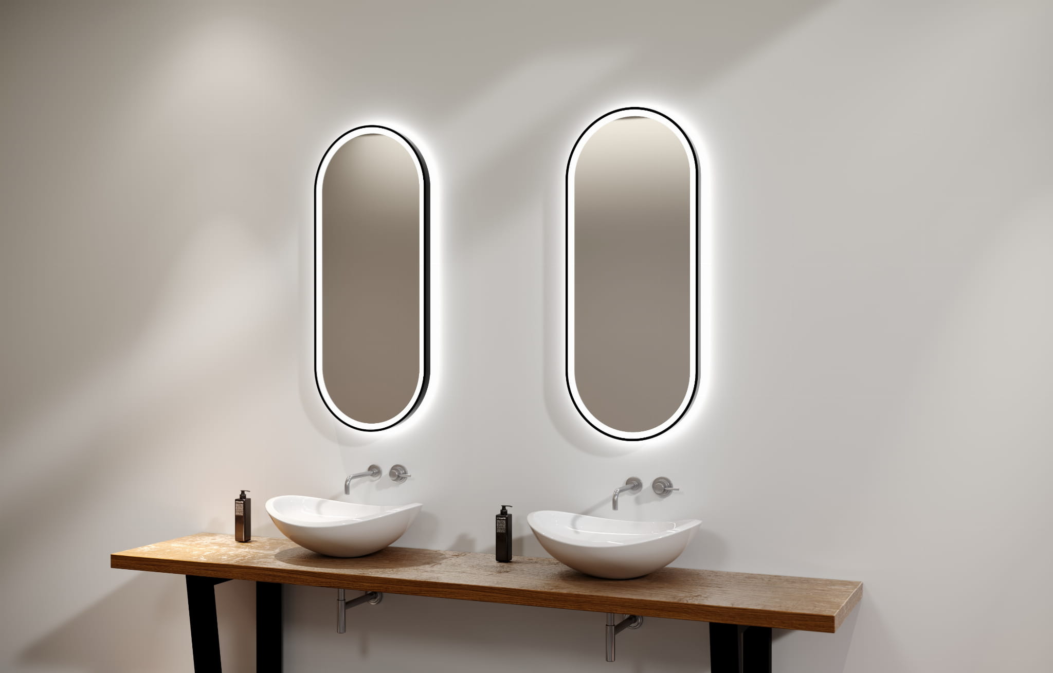 W tafli lustra znajduje się piaskowany owal, przez który przenika światło LED, równomiernie oświetlając twarz i ułatwiając codzienną pielęgnację. Dodatkowo lustro zostało wyposażone w tylne podświetlenie, które rozprasza światło na ścianę, nadając wnętrzu przytulny, nastrojowy klimat. Połączenie obu efektów sprawia, że Laura Plus jest nie tylko praktyczna, ale też stanowi elegancki, dekoracyjny element łazienki czy garderoby. Rama dostępna w różnych kolorach pozwala dopasować lustro do stylu pomieszczenia.
