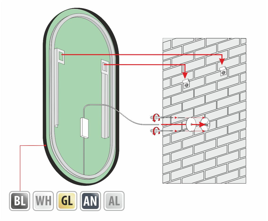 Jeżeli zachodzi potrzeba, można wybrać dodatkowo przełączniki lub sterowniki oświetlenia w lustrze. Przełączniki są przeznaczone dla luster ze światłem jednobarwnym, a sterowniki do luster ze światłem dwubarwnym.
