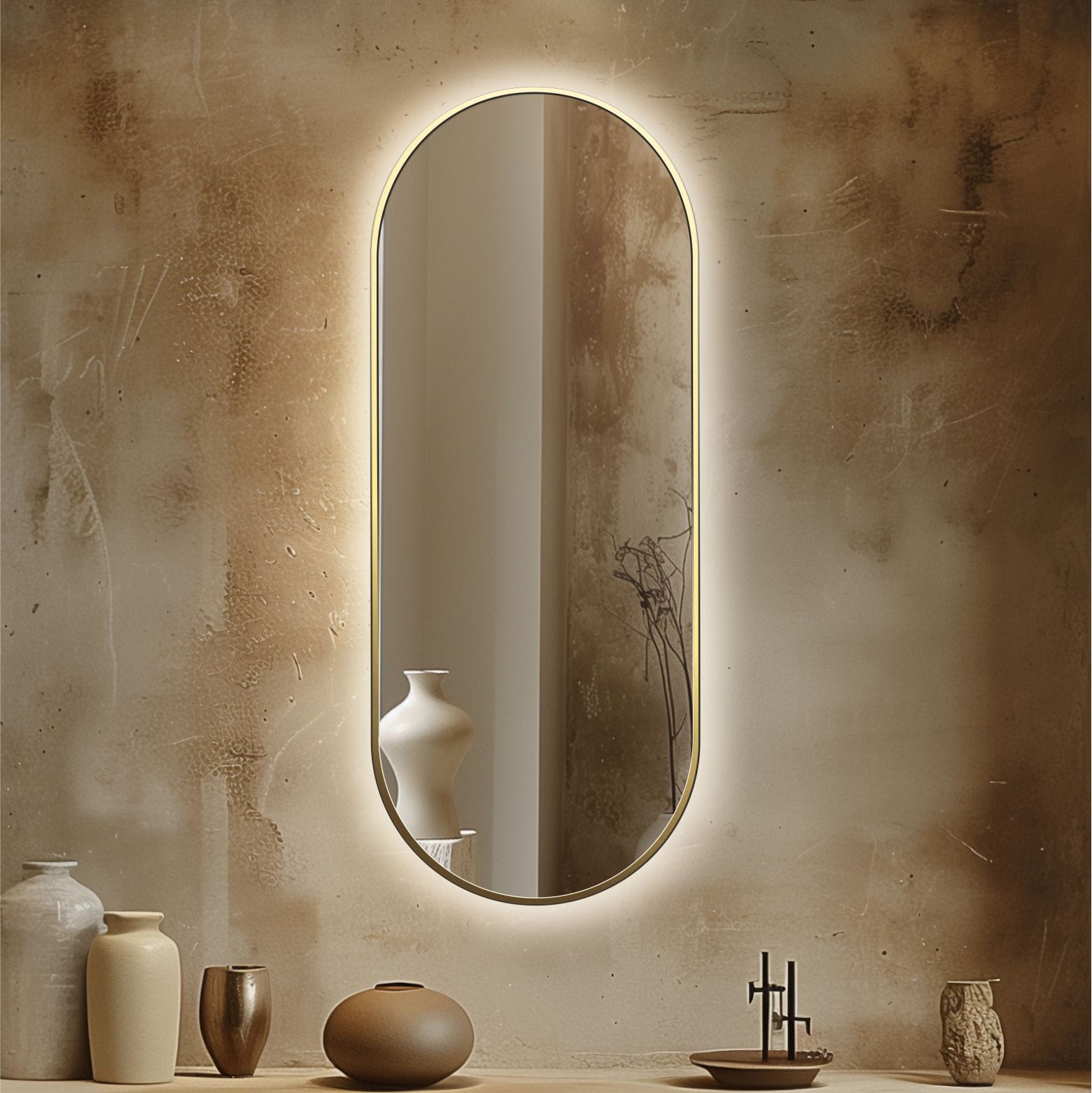 Owalne lustro osadzone w eleganckiej, dekoracyjnej ramie, wzbogacone o podświetlenie LED umieszczone z tyłu, które delikatnie rozprasza światło na ścianę. Ten efekt nadaje wnętrzu nastrojowy, przytulny klimat i subtelnie podkreśla kształt lustra. LISA PLUS łączy funkcjonalność z dekoracyjnym charakterem, sprawdzając się w łazienkach, garderobach, pokojach hotelowych czy eleganckich toaletach. Rama dostępna w różnych kolorach pozwala dopasować lustro do każdego stylu wnętrza.