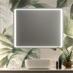Nowoczesne lustro Quadro łączy prostokątną formę z funkcjonalnym podświetleniem LED. Delikatne piaskowanie wokół tafli subtelnie rozprasza światło, tworząc przyjemną, równomierną poświatę. Minimalistyczny design sprawia, że lustro doskonale wpisuje się w nowoczesne wnętrza, podkreślając styl i elegancję łazienki.