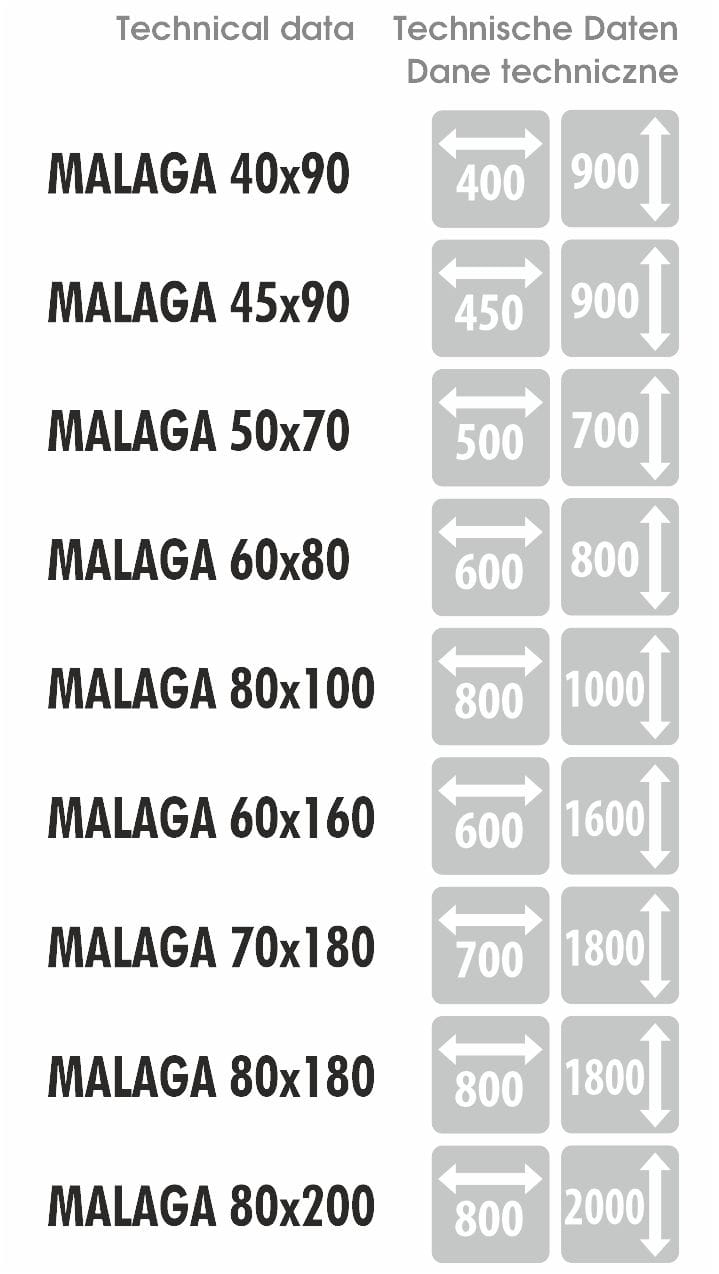 Wybierz 40x90 [cm] 45x90 [cm] 50x70 [cm] 60x80 [cm] 60x160 [cm] 70x180 [cm] 80x100 [cm] 80x180 [cm] 80x200 [cm]