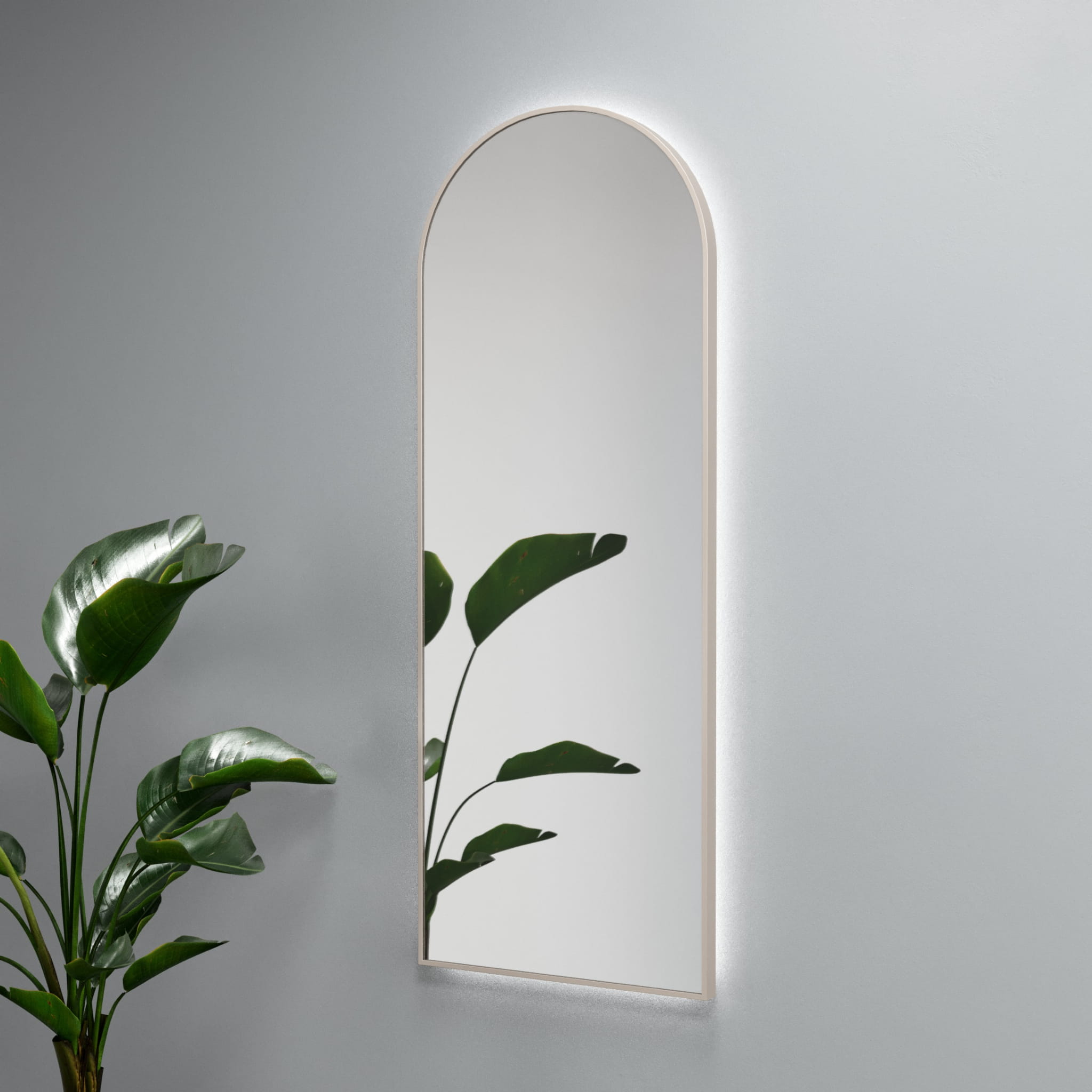 Lustro o nowoczesnej, półowalnej formie – owalne ze ściętym dołem – osadzone w eleganckiej ramie i wzbogacone o tylne podświetlenie LED. Światło subtelnie rozprasza się na ścianę, tworząc nastrojowy klimat i podkreślając kształt lustra. Malaga Plus łączy praktyczność z dekoracyjnym charakterem, sprawdzając się zarówno w łazience, jak i w garderobie czy eleganckim przedpokoju. Rama dostępna w różnych kolorach pozwala dopasować lustro do każdego stylu wnętrza.