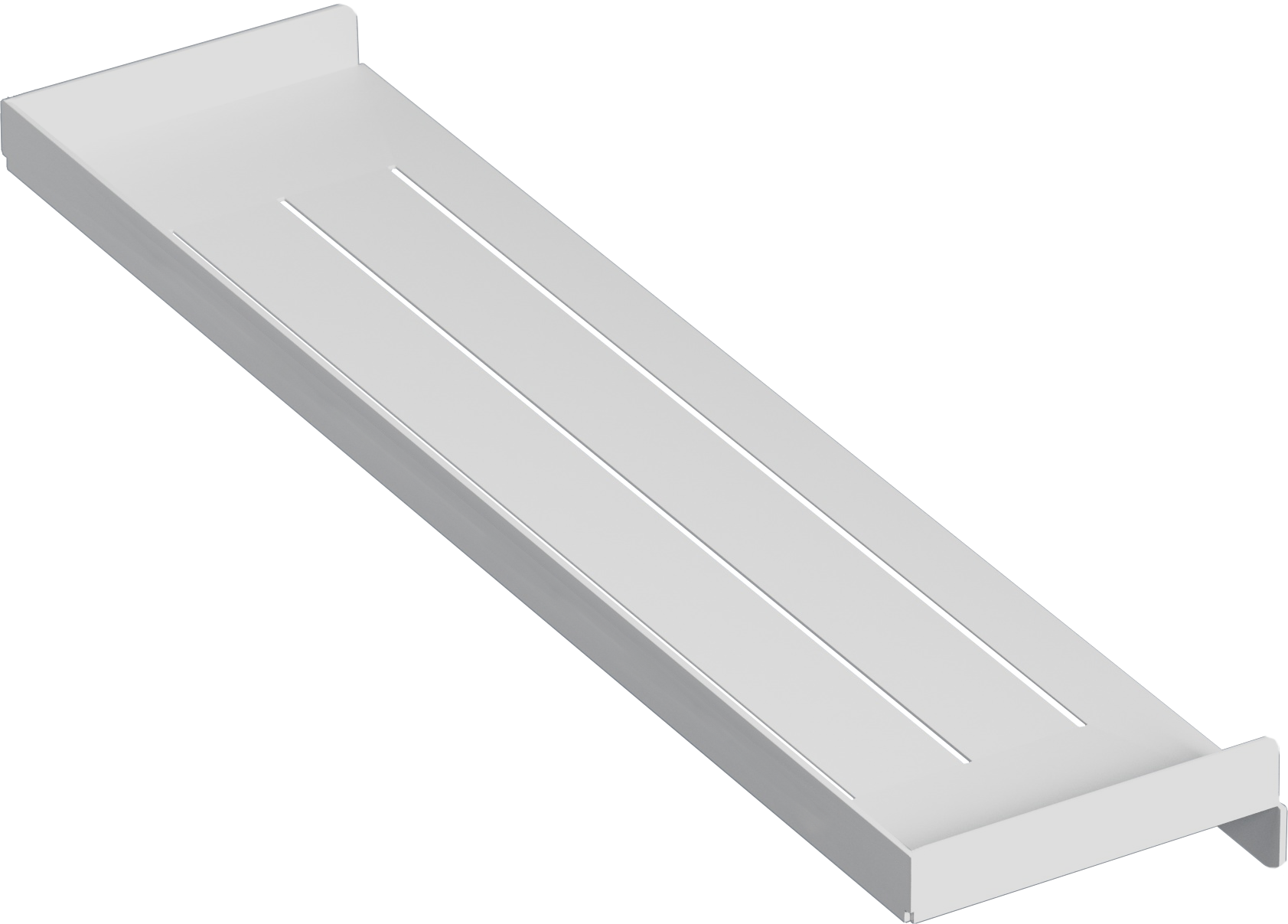 Dzięki podłużnym perforacjom w dnie półki, woda swobodnie odpływa, co zapobiega gromadzeniu się wilgoci i ułatwia utrzymanie czystości. Konstrukcja z giętej blachy gwarantuje sztywność i stabilność – nawet przy intensywnym użytkowaniu.